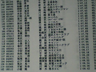 それで今日の成績ですが、67番スタートで50位。去年成績の良い人から順に滑るので、単純に考えれば17人抜き。これはまぁまぁ。ポイントも57.59がついているので、ほぼマイナス20。まーまーだね。しかし、実は今日のレースは伝説の(?)「30人抜き」に挑戦していたっす。30人抜けるかどうかで1万円の食事を賭けていたのだけれど、ゴールした時点で25人抜きぐらいだったのかな?そのあと数人に抜かれてしまい、結果として17人抜き。残念でした。