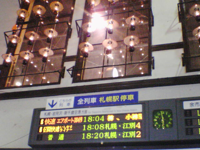 千歳に着いたのは21:30。もうすでにライラックもオホーツクもない。砂川までのSキップ5600円也を購入したものの、札幌からは鈍行で砂川まで。北海道、電車少ないっす。やっと砂川に到着したときにはもう23:00過ぎですよ。幸い、知り合いのJPが駅まで迎えに来てくれたのでなんとかかもい岳温泉までは行くことができたけど。