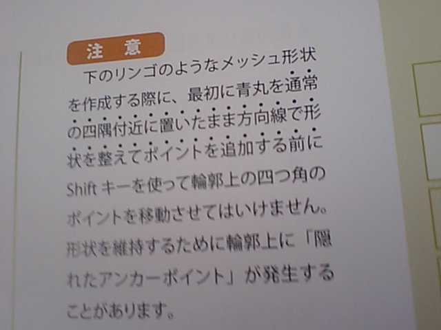 それで、今日。今日は横浜で仕事をして、湘南新宿ラインで新宿に出て、伊勢丹でちょっと用事を済ませて、それから神楽坂で仕事だったんですが、途中でちょっと時間が出来たので、新宿西口のビックカメラに行ったんです。何をしに行ったのかと言えば、USB接続のワンセグチューナーを買おうかな、と思ったんですね。別に凄く必要って言うわけでもないんだけれど、なんとなく欲しいなぁ、みたいな。で、売り場を探していたらかなり奥まったところにあったんですが、先週号だか、先々週号だかで、週刊アスキーのレビュー記事で褒めていたものがどれだかわからなくなってしまいました。「やれやれ、ちゃんと調べておけよ」と思ったのですが、後の祭りです。いつもこうやって詰めが甘いのですが、なかなかなおりません。仕方なしに購入を先延ばしにすることにしたのですが、ふと横を見るとそこはパソコンの本棚。イラストレーターの本はあるかなー、と何の気なしに見てみると、なんと、棚に「Adobe Illustratorリアルトレース実践マスター」があるじゃないですか。素晴らしい。早速購入してしまいました。