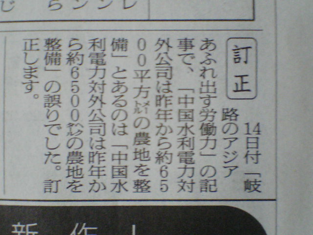 朝日新聞の訂正記事から。