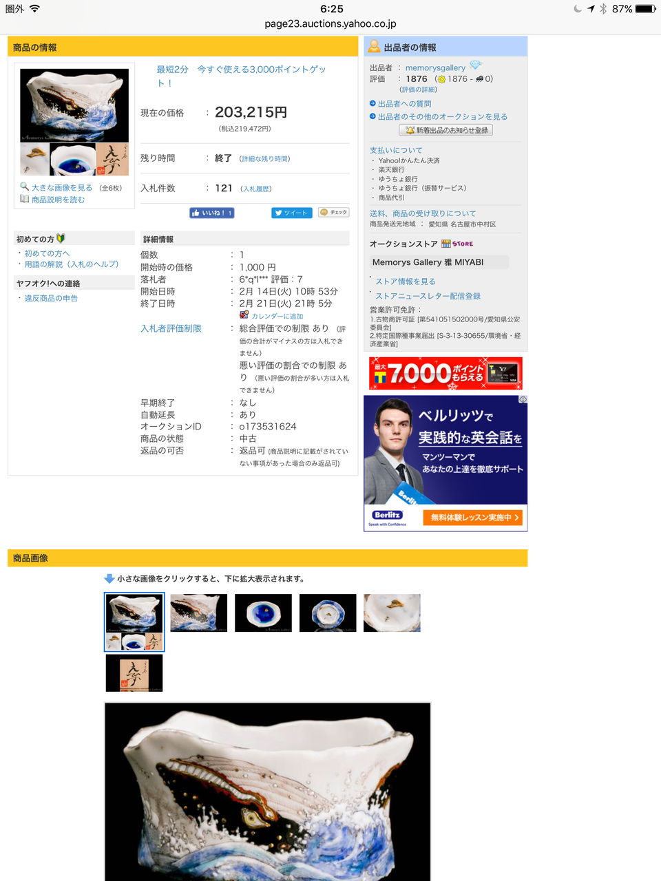 それで、オークション終了時刻は僕は飛行機の中で、そりゃ、20ドルぐらい払えばリアルタイムでの入札も可能なんだけれど、観戦するだけでそんなにお金を払うのはただの無駄遣いなので、飛行機を降りて、入国手続きを終えてから結果をみて仰天した。なんなんだ、この価格は。