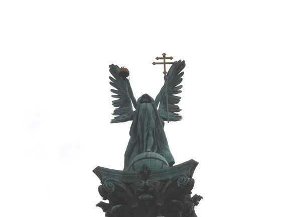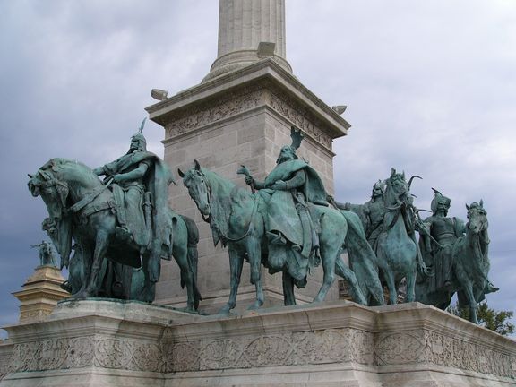 まずはペスト地区の観光。ホテルから世界遺産のアンドラーシ大通りを通って英雄広場へ。英雄広場はブダペスト最大の広場で、中央には大天使ガブリエルの像がある。扇形の列柱にはハンガリー建国の英雄達の像がある。