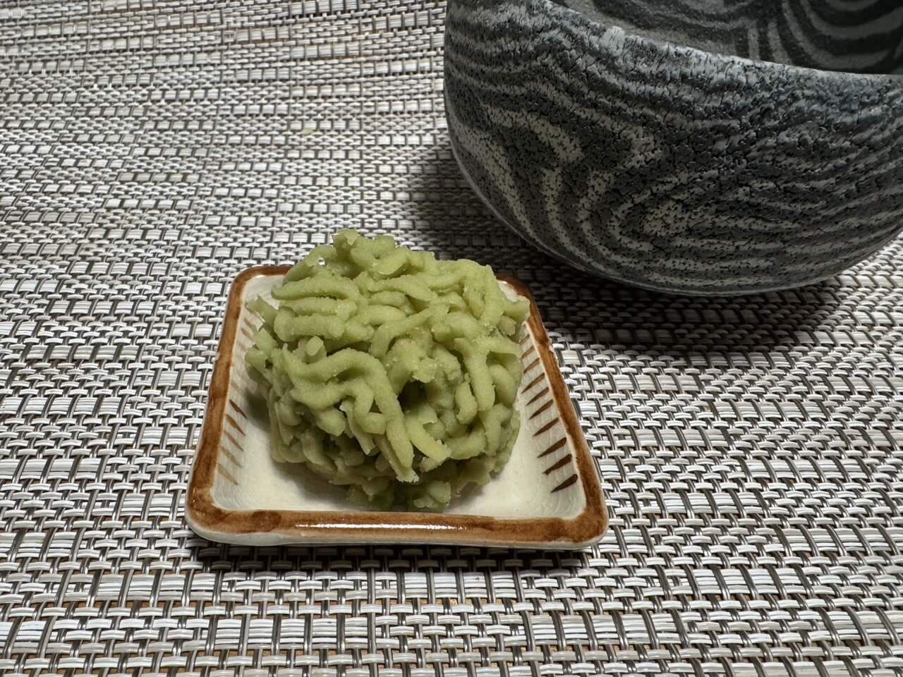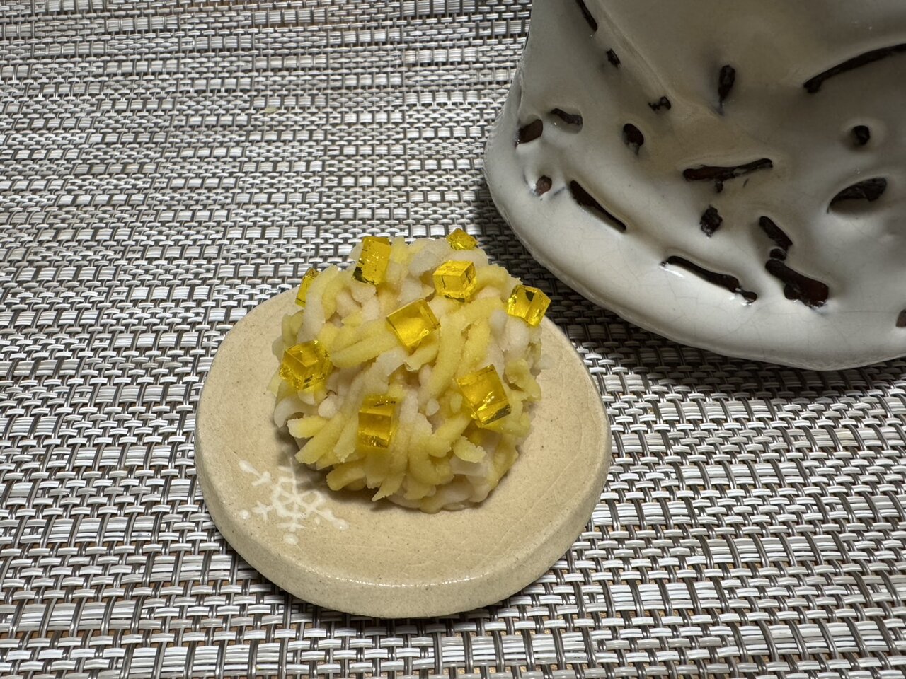 せっかくなので魯山人の皿と十二代三輪休雪の茶碗で楽しんだ。