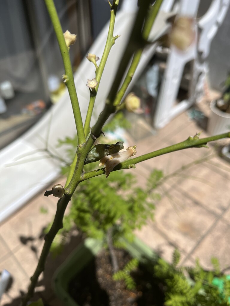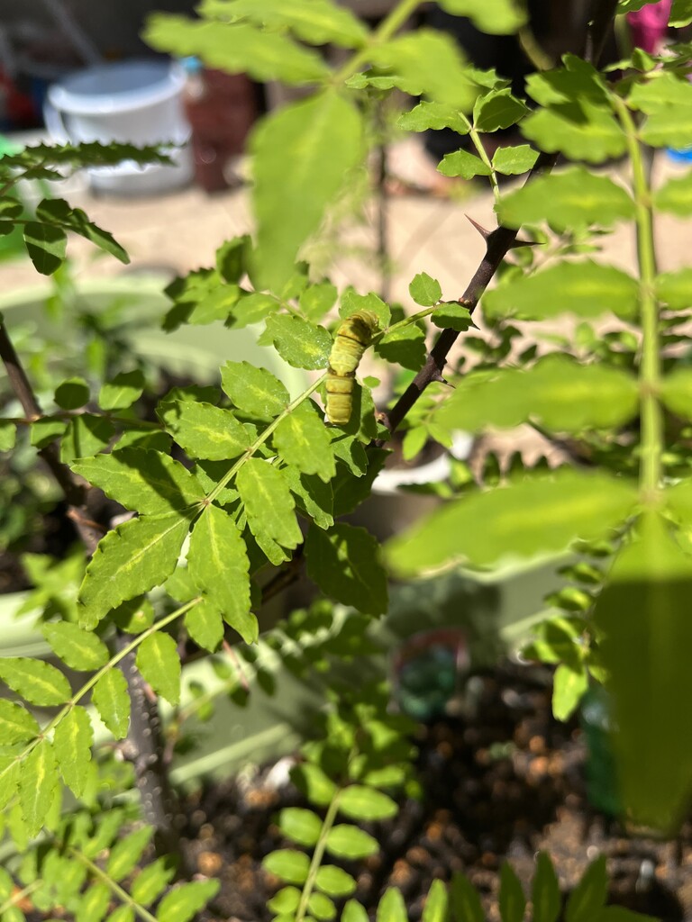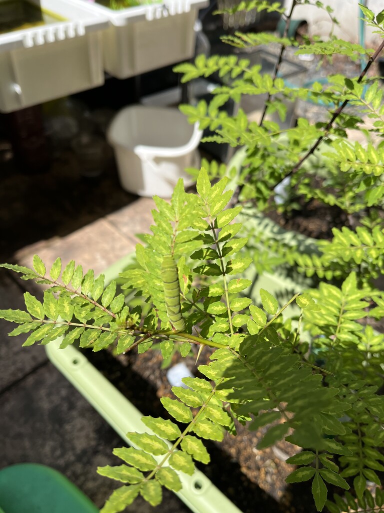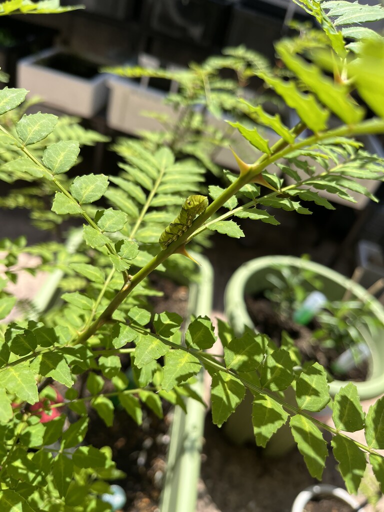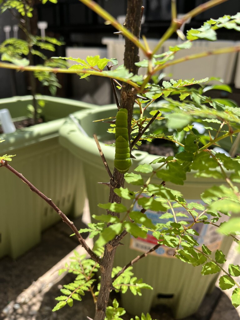 山椒はそこそこ大きい木なので良いのだけれど、柚子はまだ小さいので、食べ尽くされてしまいそう。時々山椒に引っ越してあげないとかも。