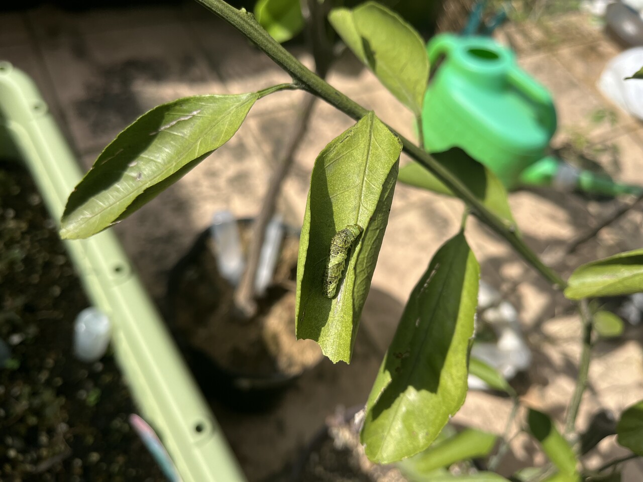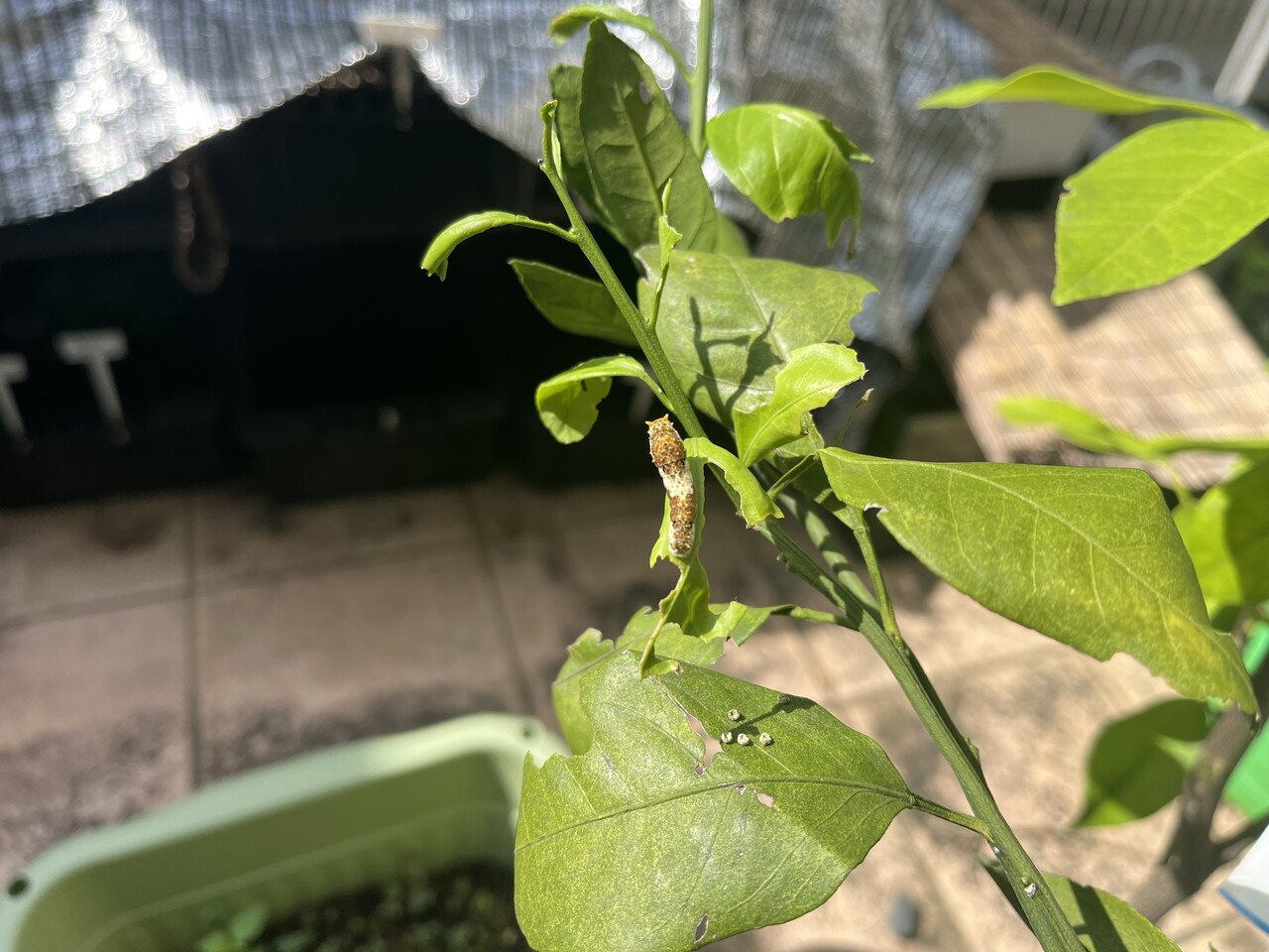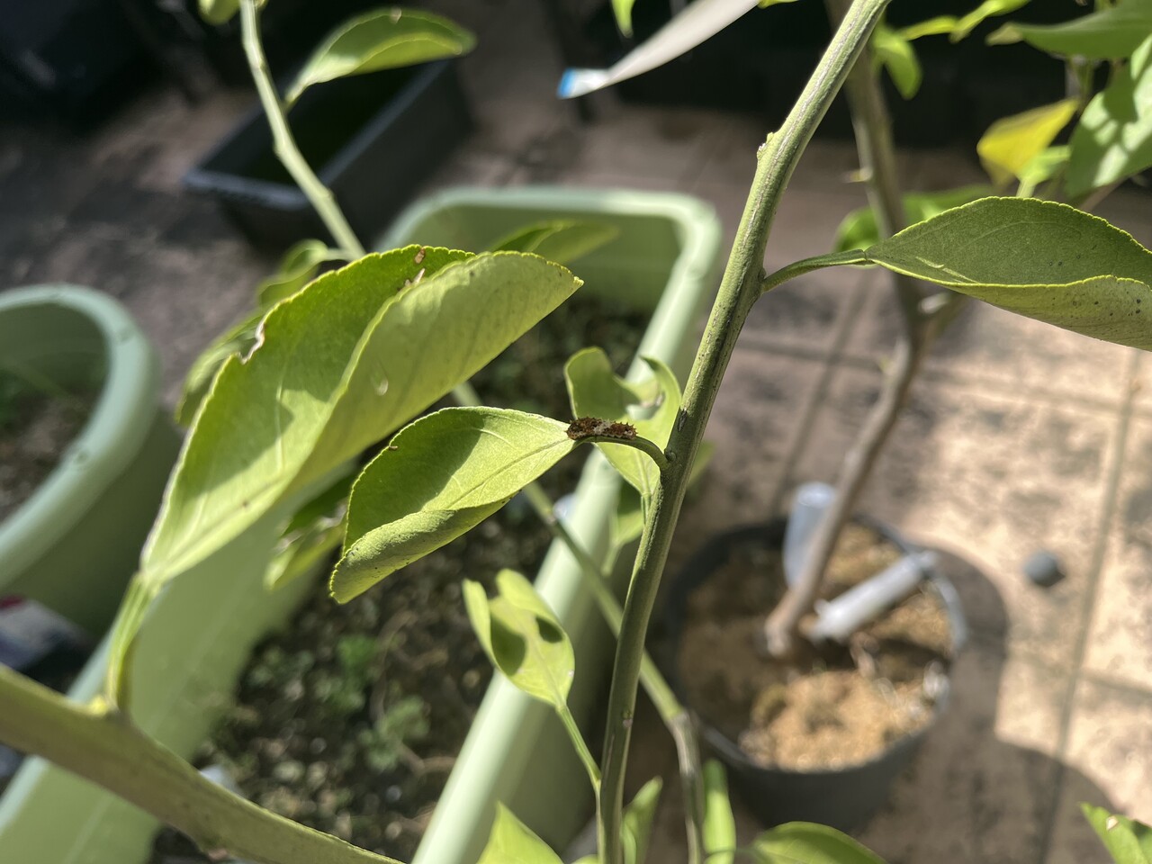 山椒はそこそこ大きい木なので良いのだけれど、柚子はまだ小さいので、食べ尽くされてしまいそう。時々山椒に引っ越してあげないとかも。