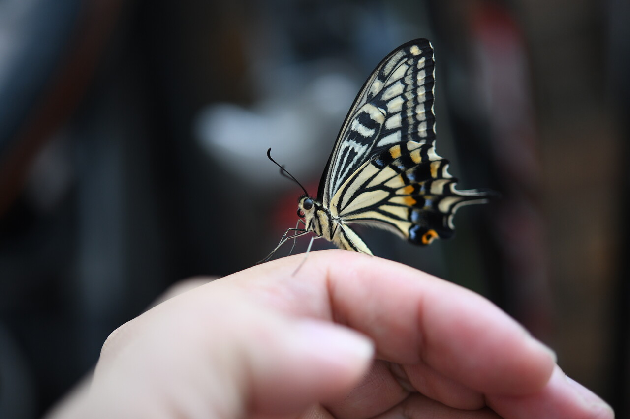 チョウのサイズは幼虫の時に食べた餌の量で決まってくる。餌が少なくて大きくなれなくても蛹になって成虫になることはできるのだが、小さい幼虫からは小さい成虫が羽化する。そして小さい成虫は羽は小さいけれど、本体はそれほど小さくならず、結果として上手に飛ぶことができなくなる。幼虫の時にちゃんと食べておくことが大事である。