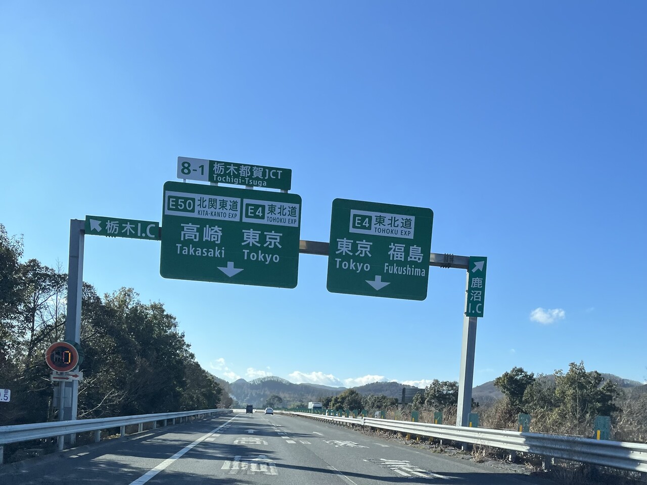 ここで右に行ったら東北道の下り。その先には鹿沼、宇都宮、那須、郡山、福島と続くので、なかなか東京には行きつかない。高速道路で東京へ行こうと思えば、郡山から磐越道、常磐道を使ってぐるっとまわるか、磐越道、関越道を使ってぐるっとまわるか、もっと西の方をまわるか、どれにしてもものすごい遠回りになる。